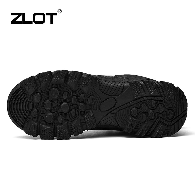 【ZLOT】 Plus Size 38-49 Outdoor Hiking Shoes Brand Waterproof Leather Sports Shoes Anti Slip Black Rubber Shoes For Men