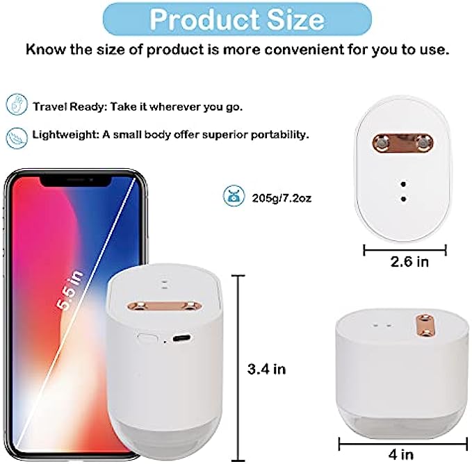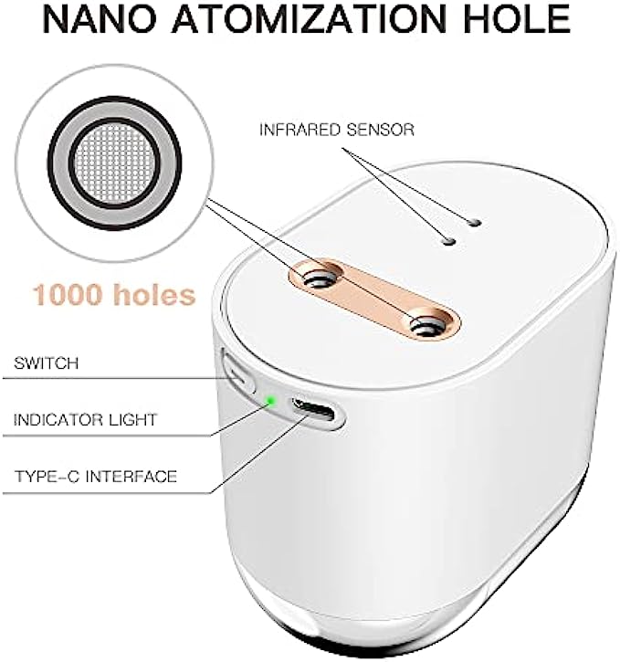 • ?Ultra-sonic Atomization Technology : Touchless two hands sanitizing device, sanitizing mist sprayer, microporous atomization. Sanitizer spray for restaurants, car hand sanitizer dispenser, silent and moisturizing. The sanitizer can evenly apply to all surfaces of hands or cell phones, helping families effectively avoid cross infection.