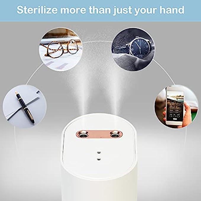 • ✔️Portable & Widely Use : Leak-proof and lightweight design, portable sterilizer and mist disinfectant sprayer. Automatic induction spray, safe and ample misting without disturbing children and adults. It can be carried in your bag and used anywhere. Suitable for cleaning hands, cell phones, glasses, keys, pens or remote controls.